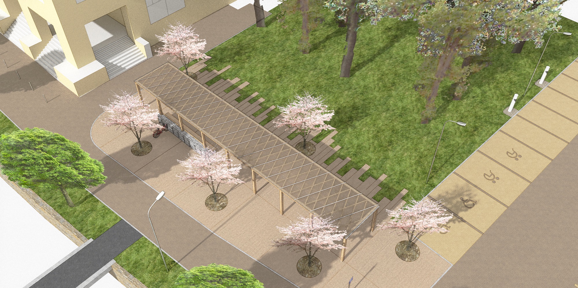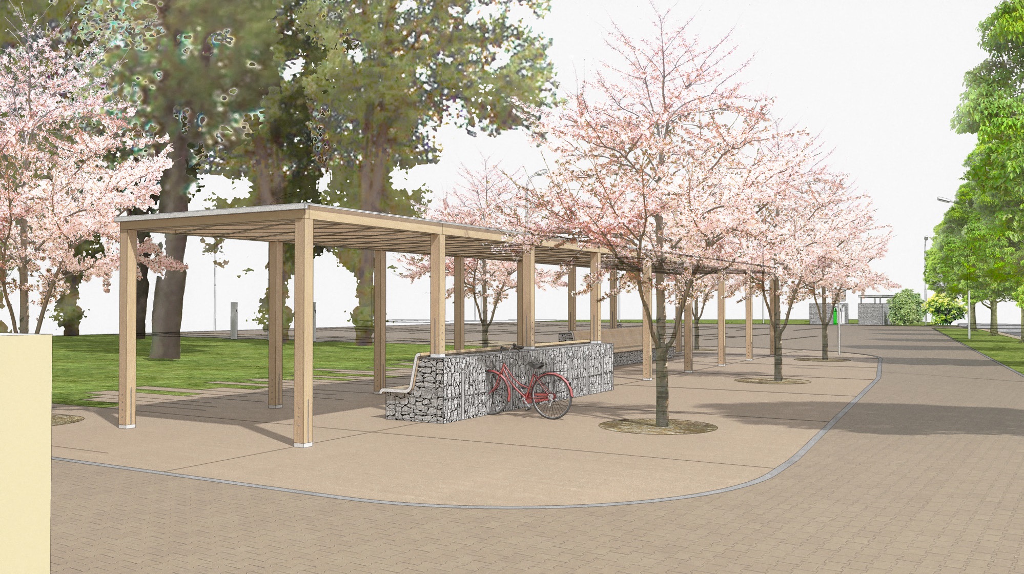 Dokončení parkoviště na náměstí u Tilie - přístřešek, VO, a zpevněné plochy.