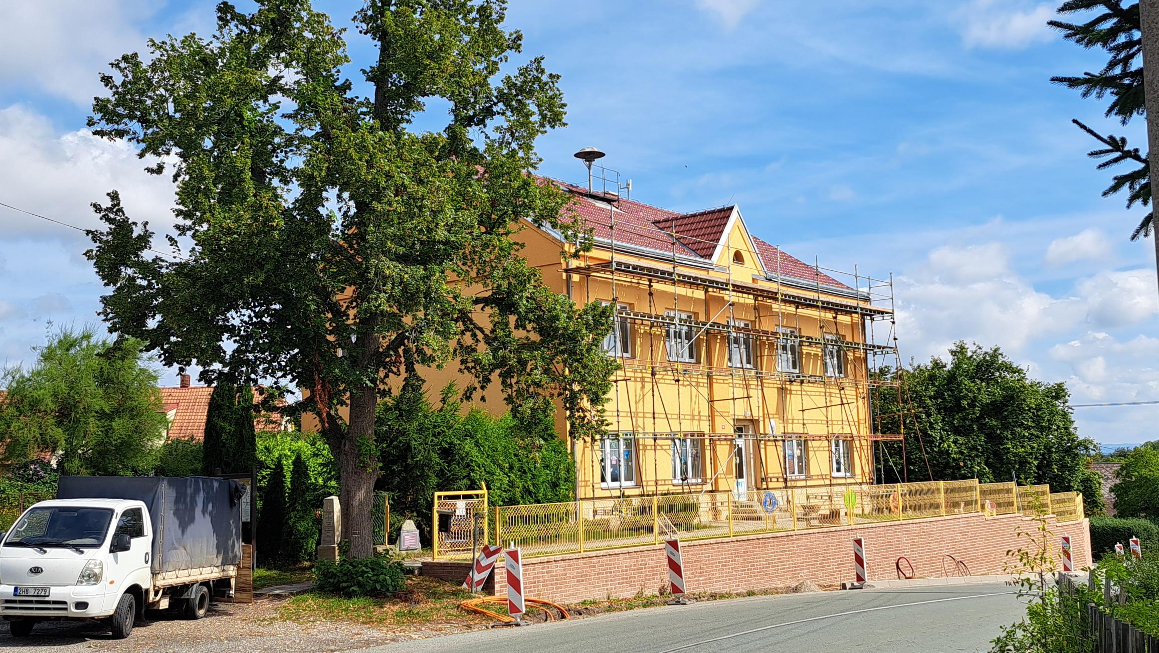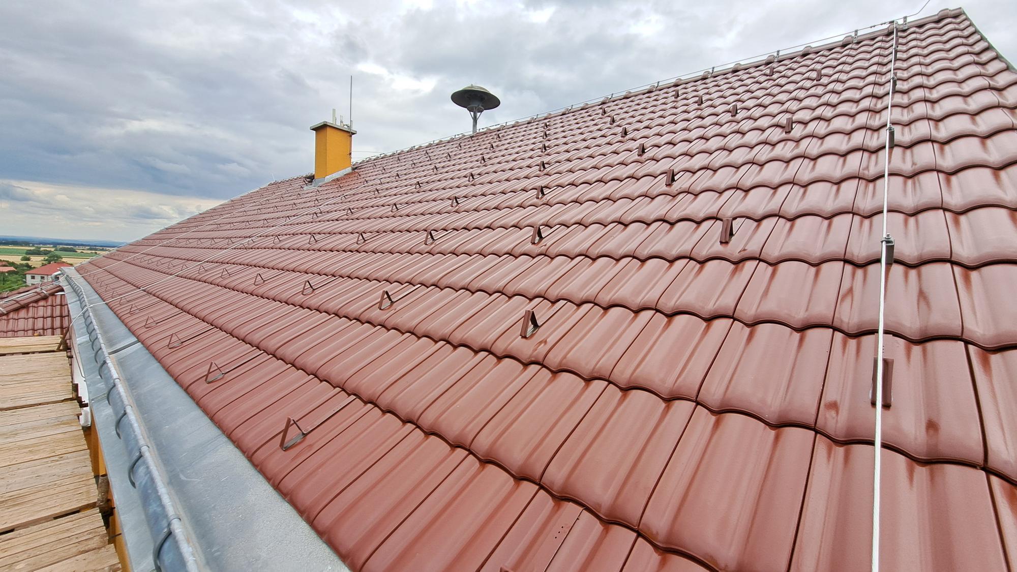 Během letošních prázdnin v termínu od 14.črevence do poloviny srpna 2025 byla celkovým nákladem 1.343.281,50 Kč poškozená krytina vč. klempířských prvků vyměněna za novou taškovou.