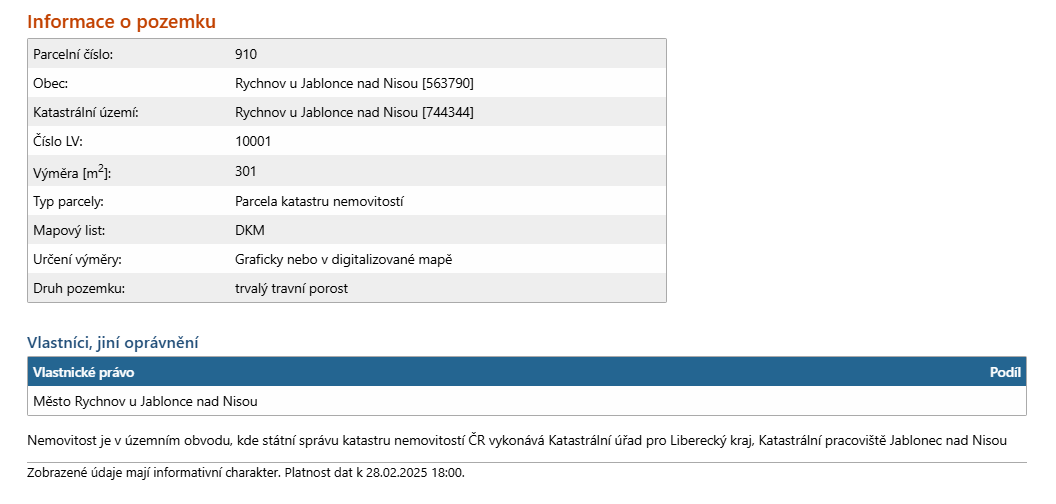 Paní Abrahamová požádala město o pronájem pozemku č. 910 o výměře 301 m2 v k.ú. Rychnov u Jablonce nad Nisou pro potřeby komunitního chovu cca 20 kusů kura domácího. Pozemek je veřejně přístupný z ul. Ještědská, mírně svažitý, bez porostu, dle KN vedený jako TTP, dle ÚP vedený jako veřejné prostranství, veřejná zeleň.