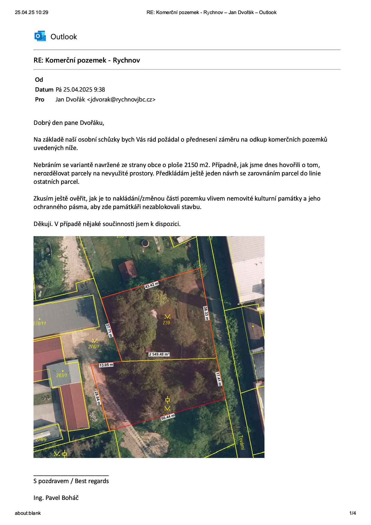 Bc. Levinský:Domnívá se, že směna je pro město výhodná, třeba v případě komunikace u Ornexu má město jen malý pruh. Jinak původní návrh společnosti byl pouze prodej pozemků.