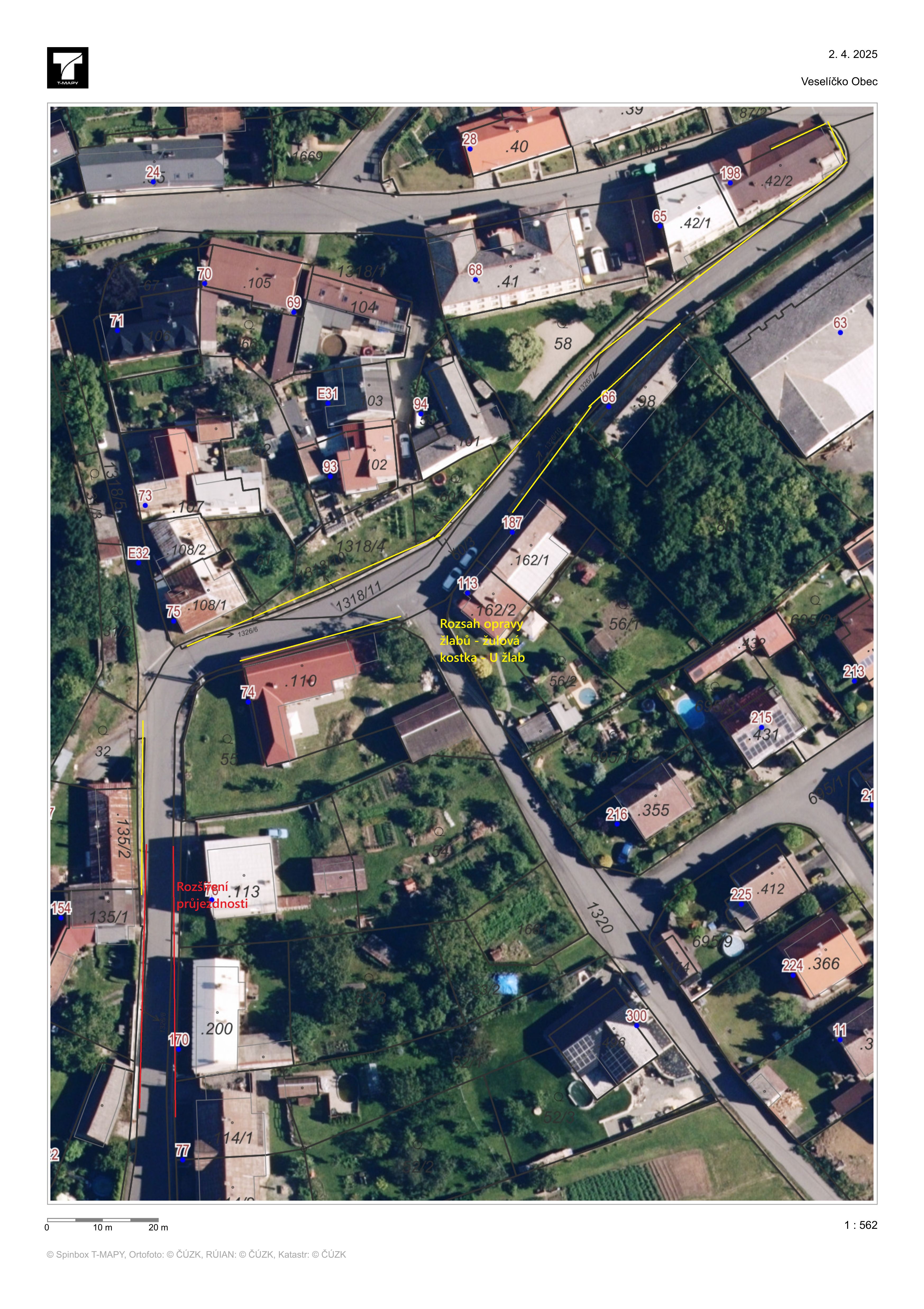 zadání zpracování projektové dokumentace pro opravu žlabů od č.p 198 po č.p. 122 Veselíčko a úpravu průjezdnosti komunikace č. III/43612 v úrovni domu č.p. 154 Veselíčko.