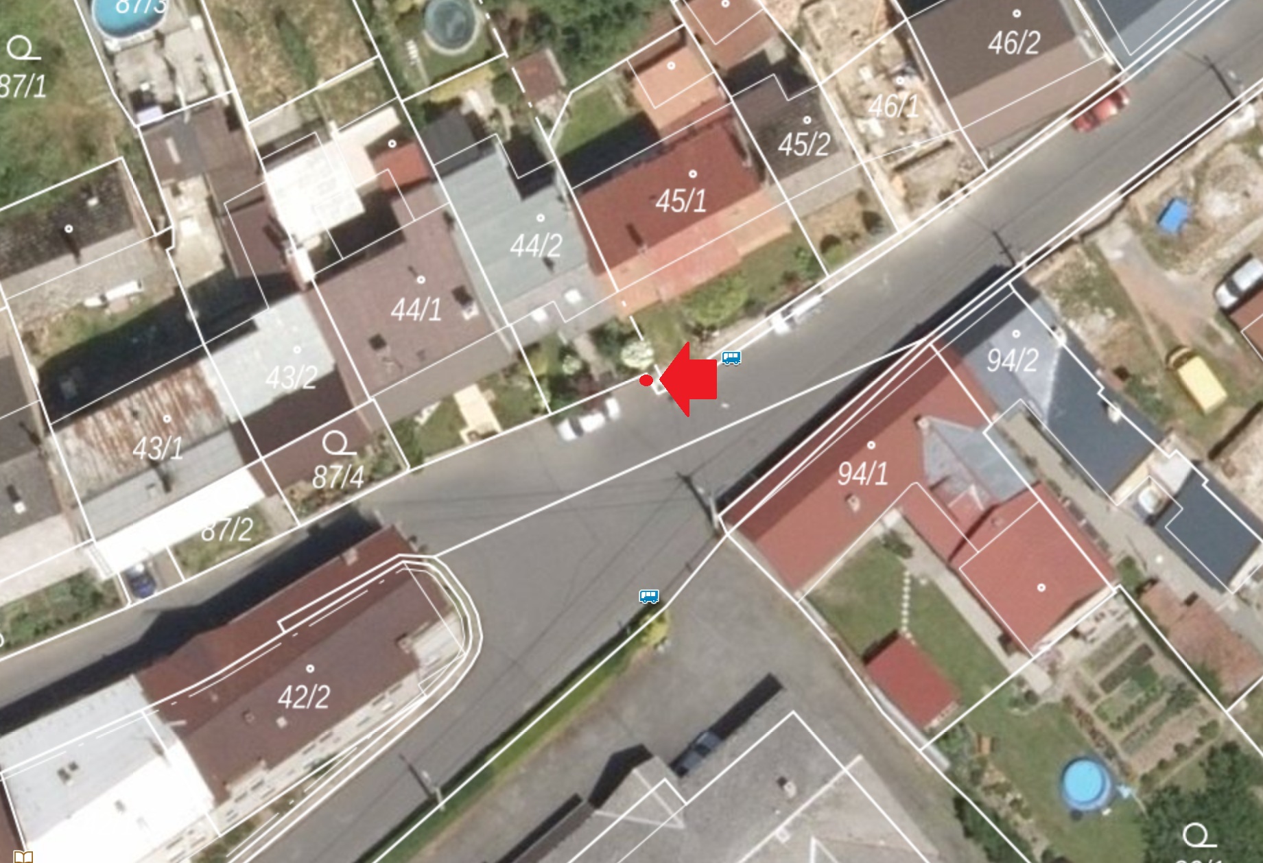 přemístění označníku autobusové zastávky před studnu dle zákresu nového umístění v příloze.