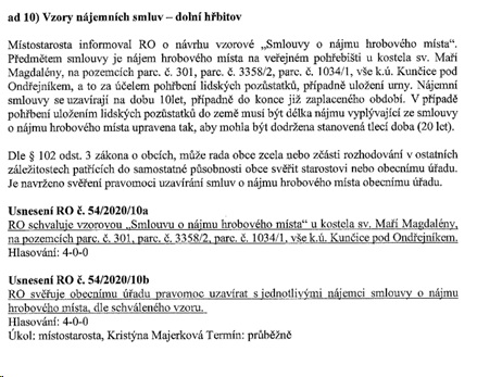 Vzorová smlouva „Smlouva o nájmu hrobového místa“ zůstává stejná dle Usnesení RO č.54/2020/10a