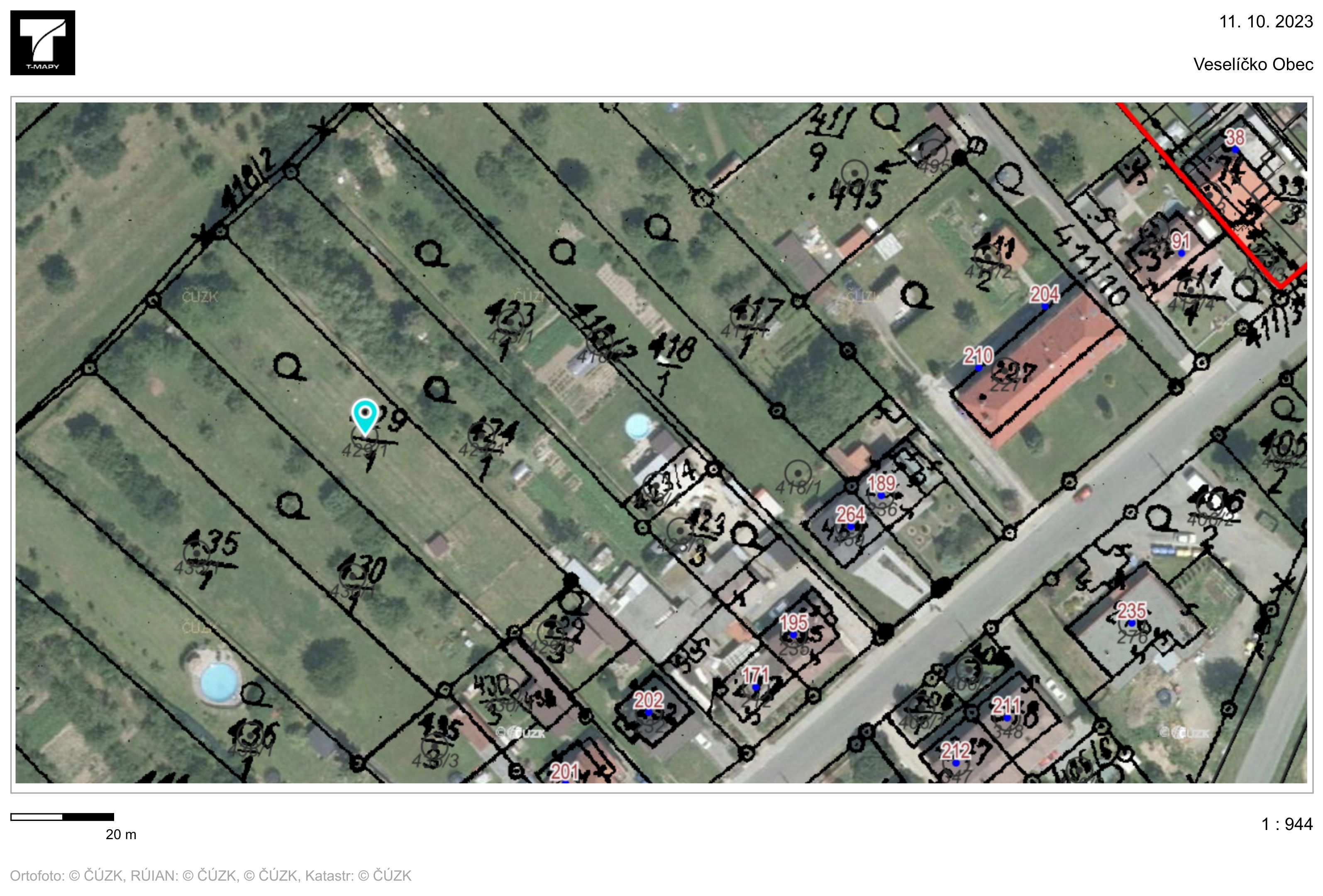 Pozemek v majetku Kamil Jung parc. č. 2361 v k. ú. Veselíčko o výměře 2065 m2 - cena 119 192,- Kč