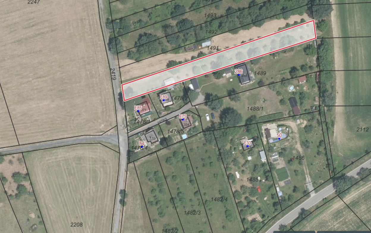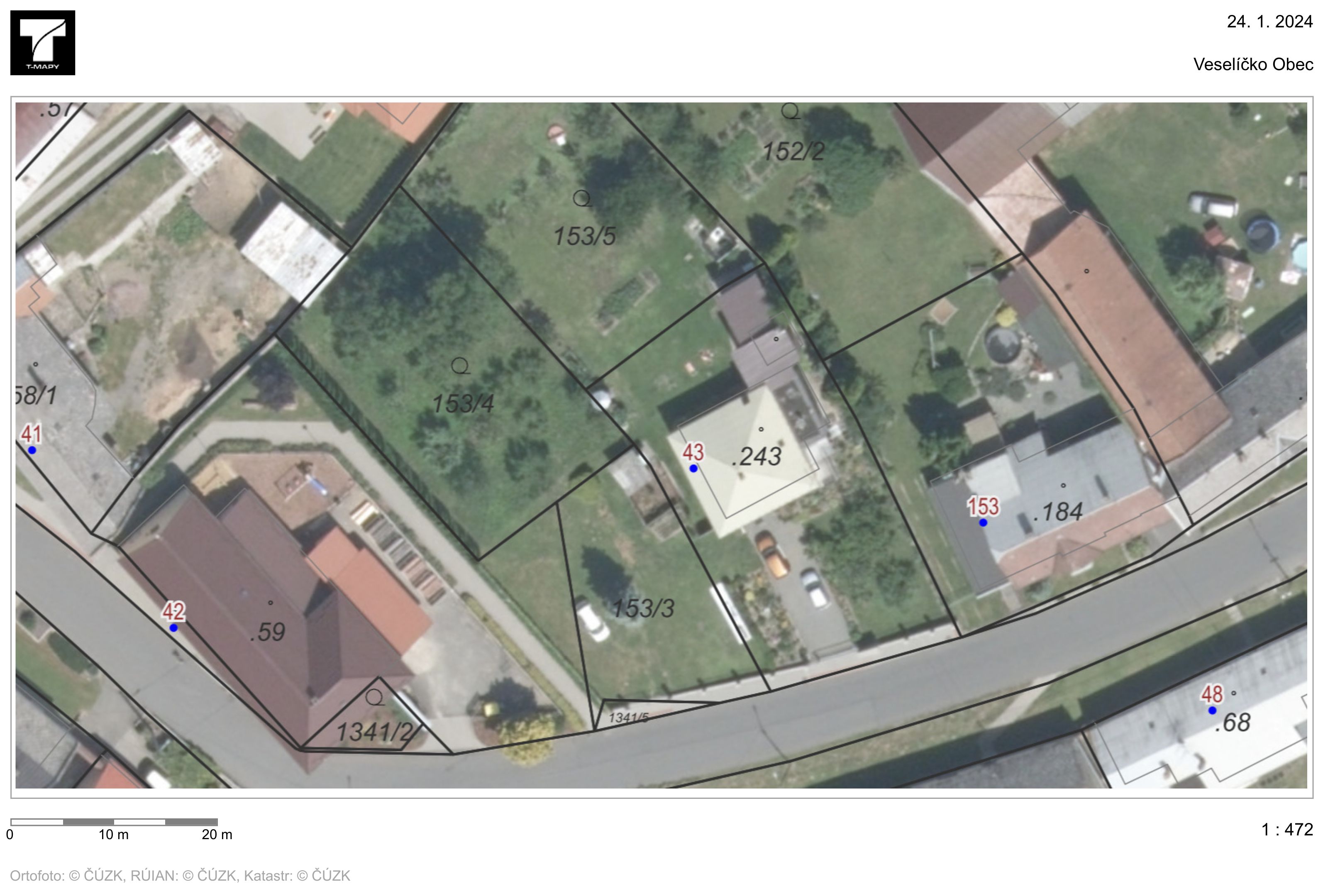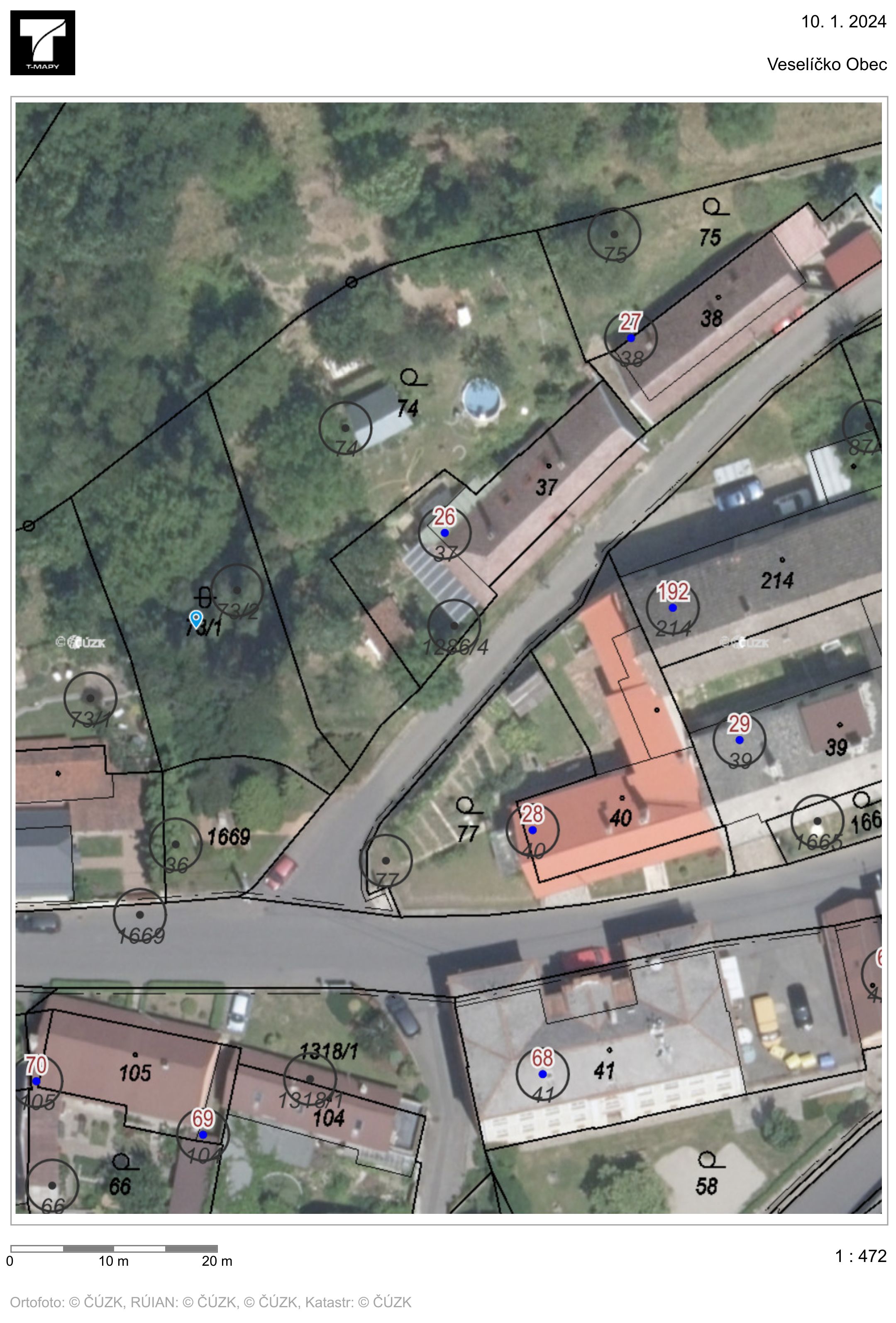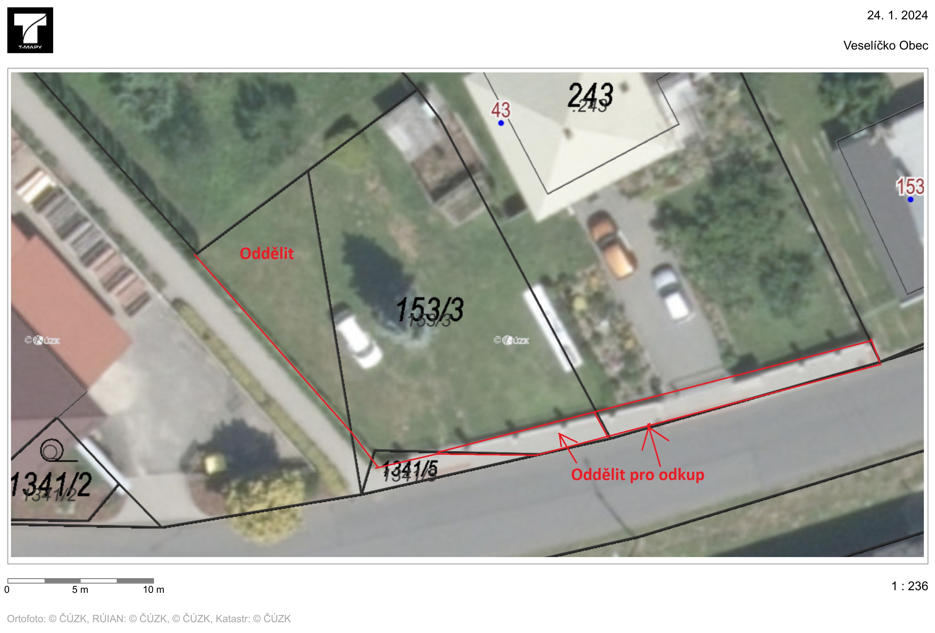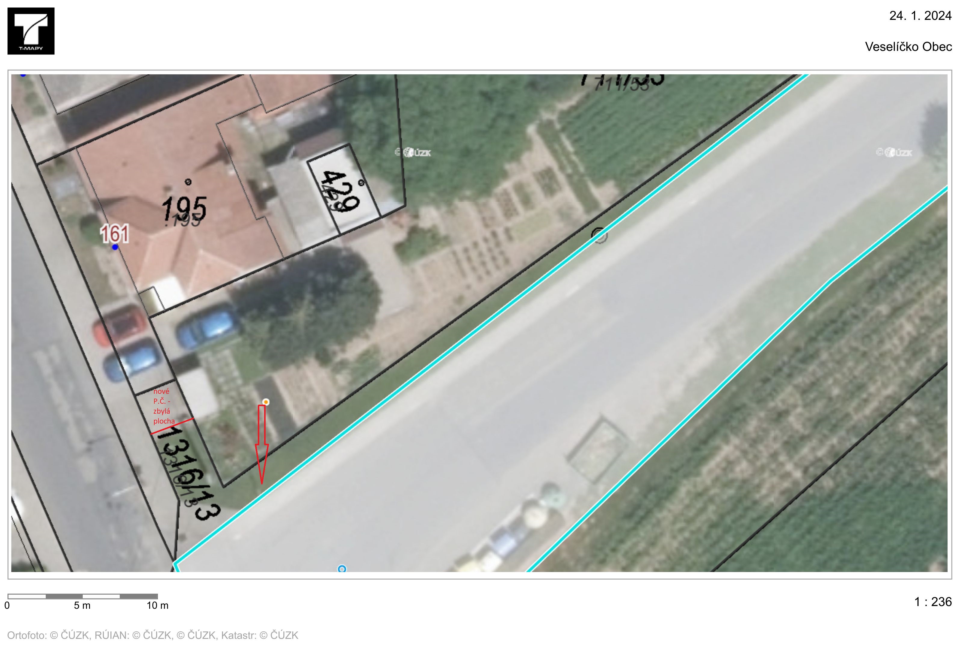 Jde o narovnání stavu po obnově katastrálního operátu. Lokalita Veselí - autobusová zastávka.