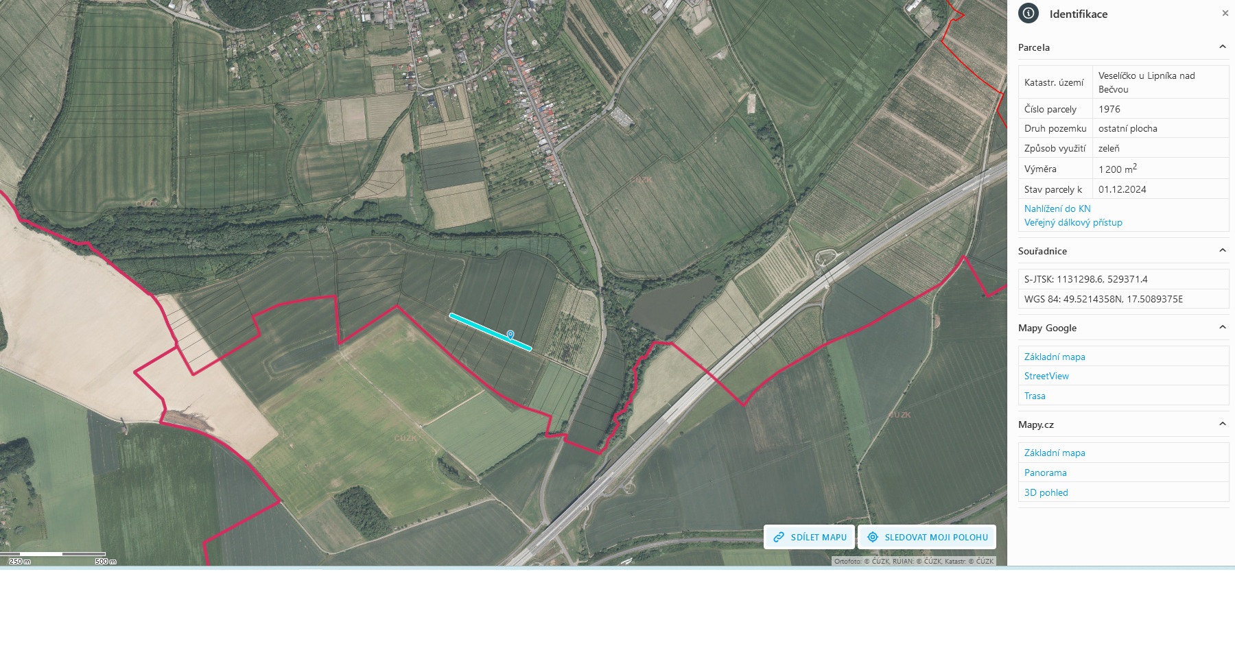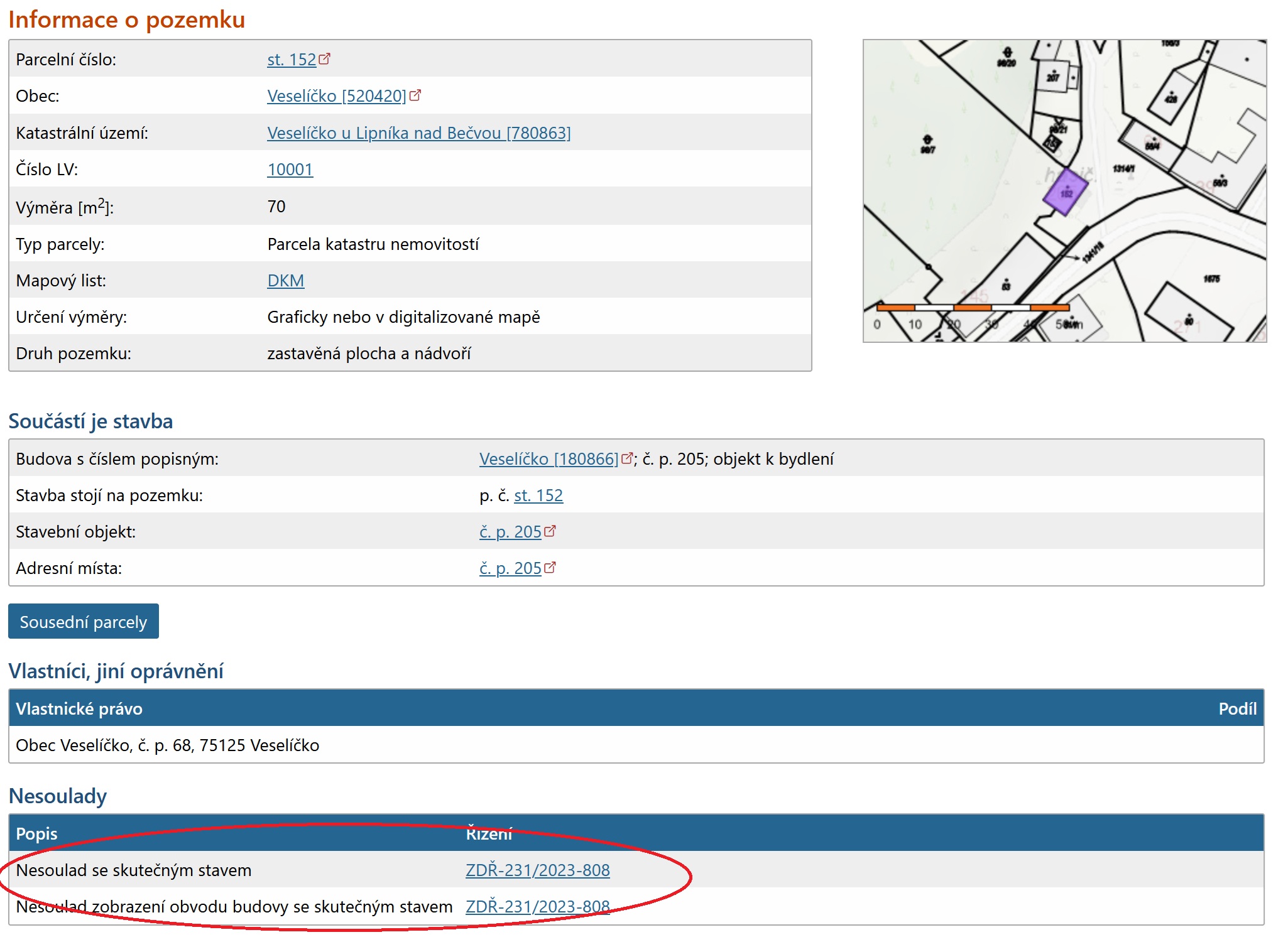 Pozemek je v majetku Václava Podlesného, bytem Veselíčko, nar. r. 1980.