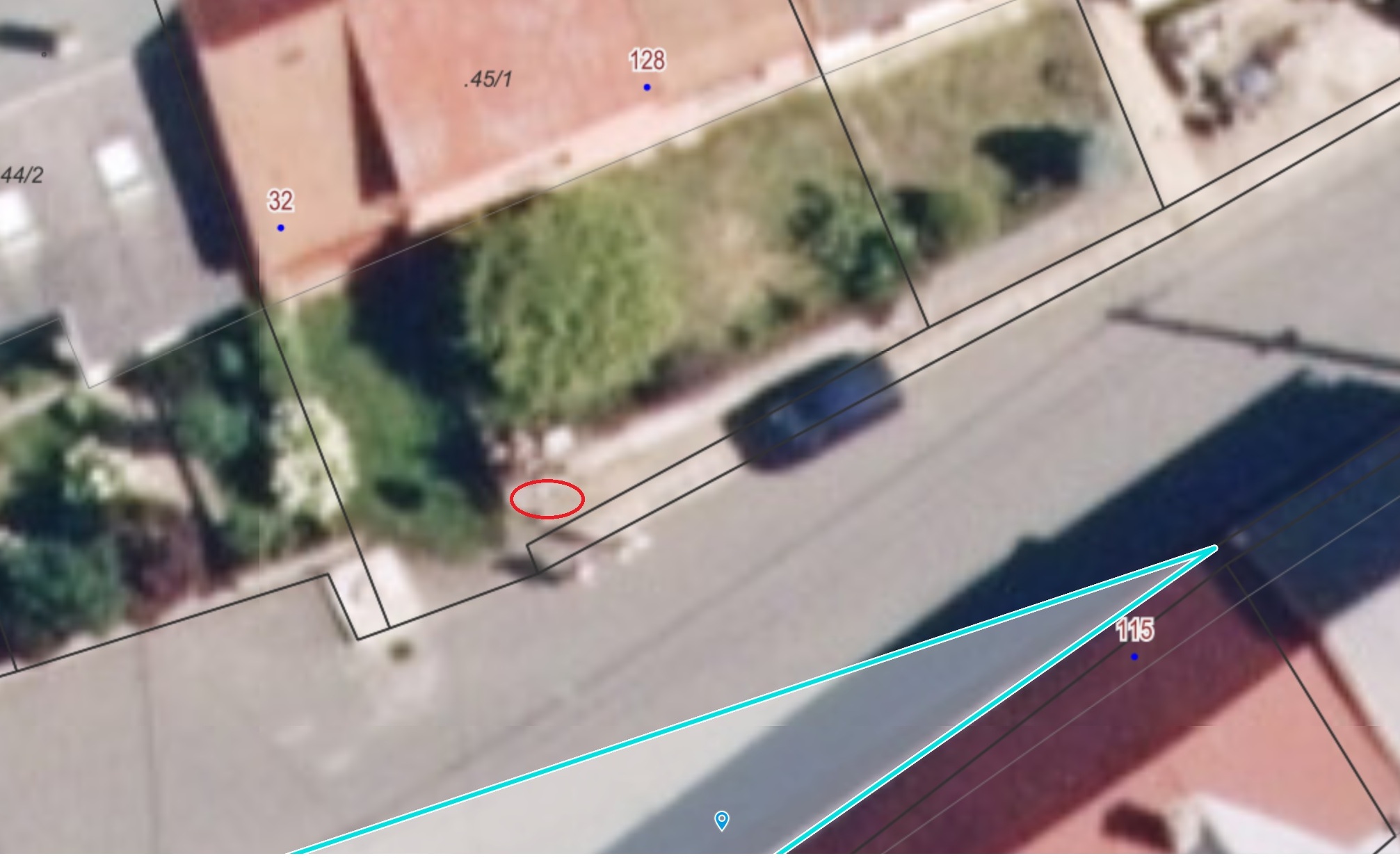 Stávající označník je na soukromém pozemku. Bude nutné přemístit označník.
